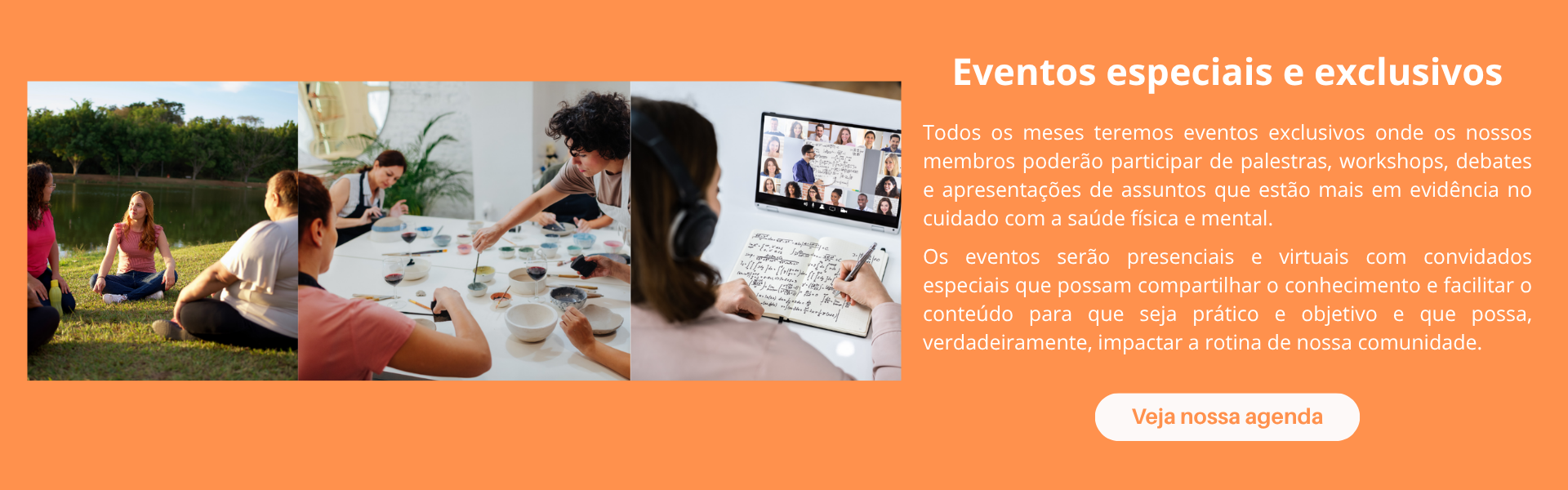 - Acesso aos EVENTOS ONLINE ao vivo sobre saúde e bem-estar.